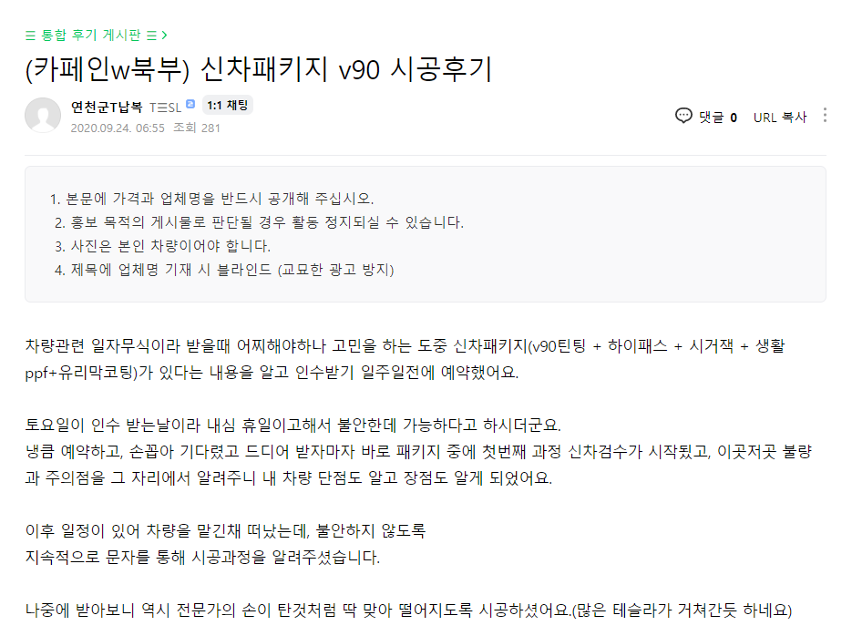 신차패키지 V90 시공후기