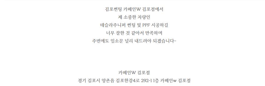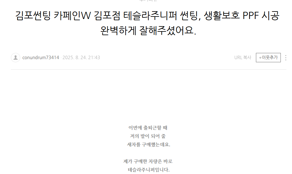 김포썬팅 카페인W 김포점 테슬라주니퍼 썬팅, 생활보호 PPF 시공 완벽하게 잘해주셨어요.