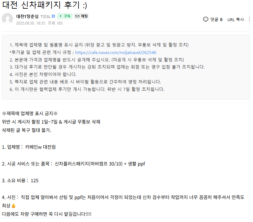 대전 신차패키지 후기 :)