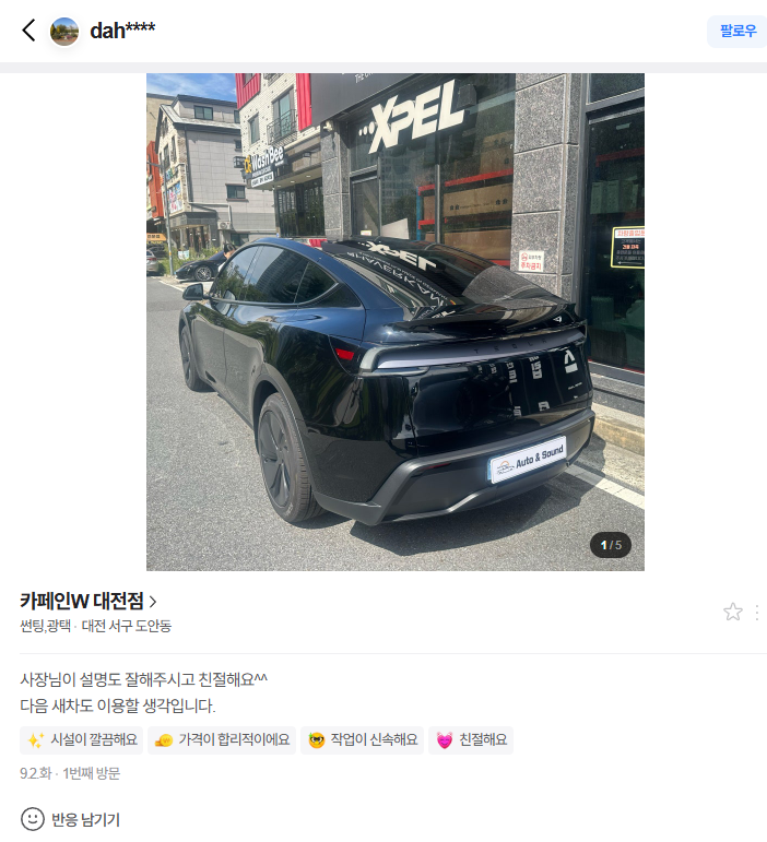 네이버 플레이스 리뷰 - 카페인W 대전점