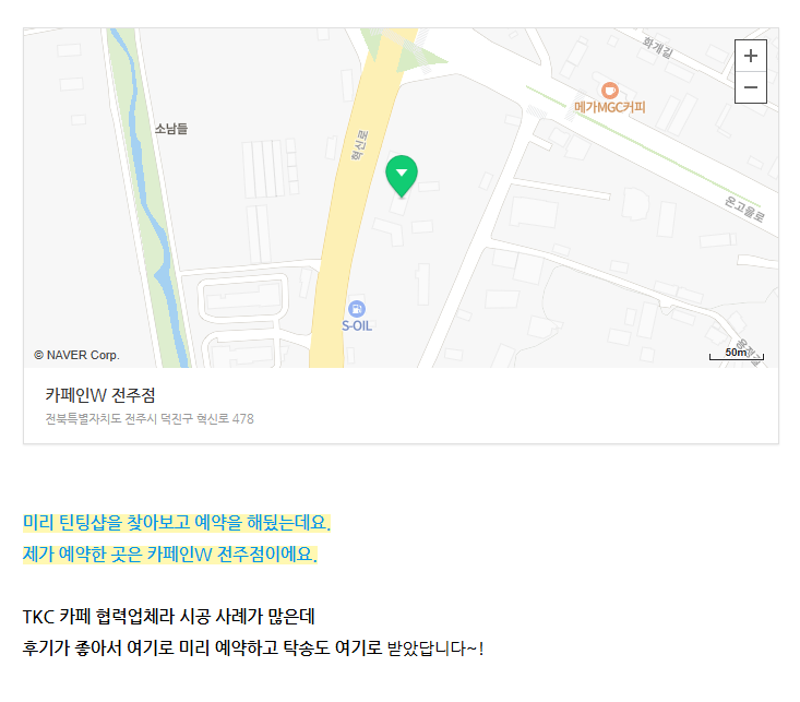 네이버 플레이스 리뷰 - 카페인W 대전점