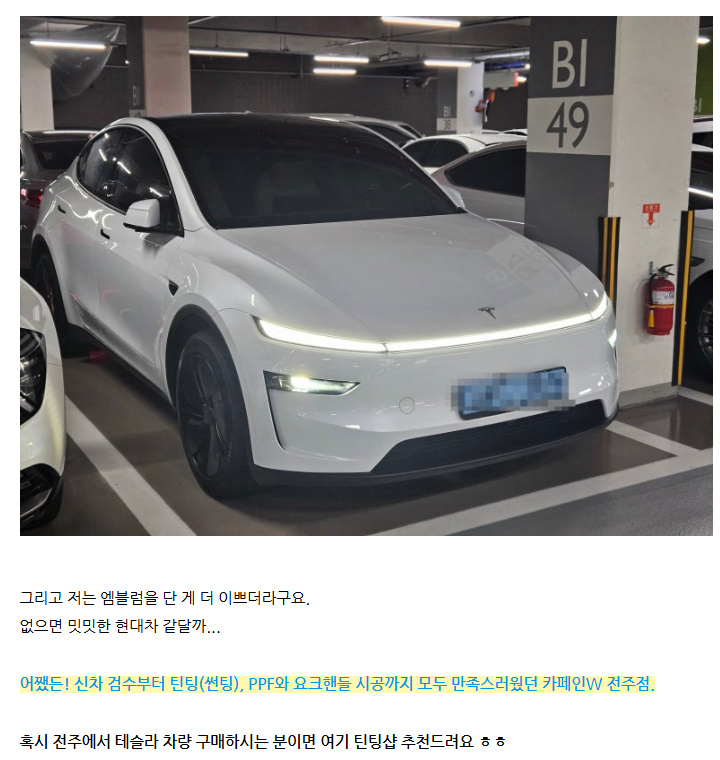 테슬라 모델 Y 주니퍼 전주 틴팅샵(썬팅) 카페인W 전주점 솔직 후기