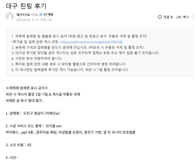 대구 틴팅 후기