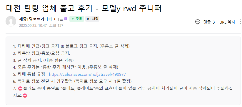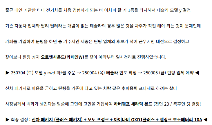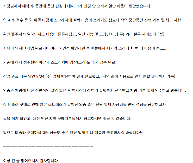 대전 틴팅 업체 출고 후기 - 모델Y RWD 주니퍼