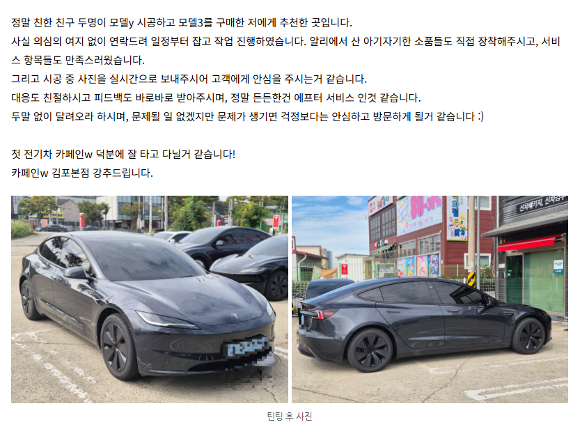대전 틴팅 업체 출고 후기 - 모델Y RWD 주니퍼