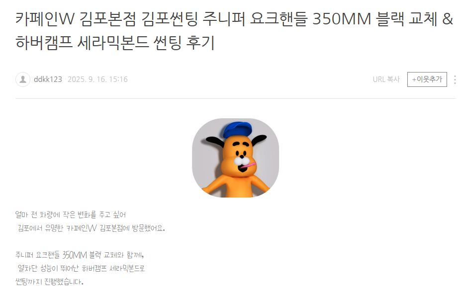 카페인W 김포본점 김포썬팅 주니퍼 요크핸들 350MM 블랙 교체 &하버캠프 세라믹본드 썬팅 후기