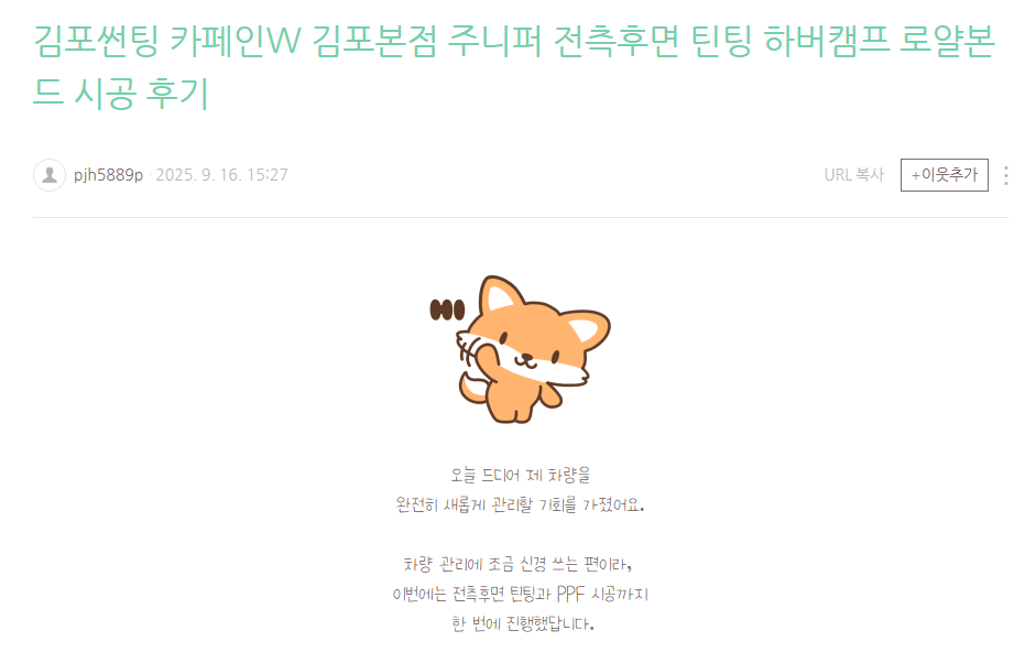 김포썬팅 카페인W 김포본점 주니퍼 전측후면 틴팅 하버캠프 로얄본드 시공 후기