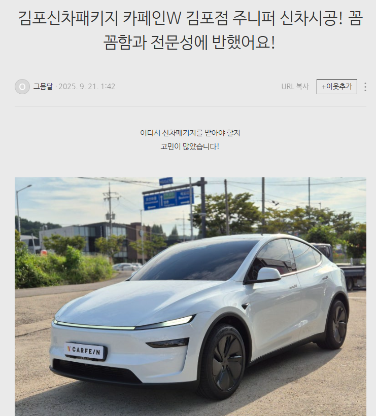 김포신차패키지 카페인W 김포점 주니퍼 신차시공! 꼼꼼함과 전문성에 반했어요!