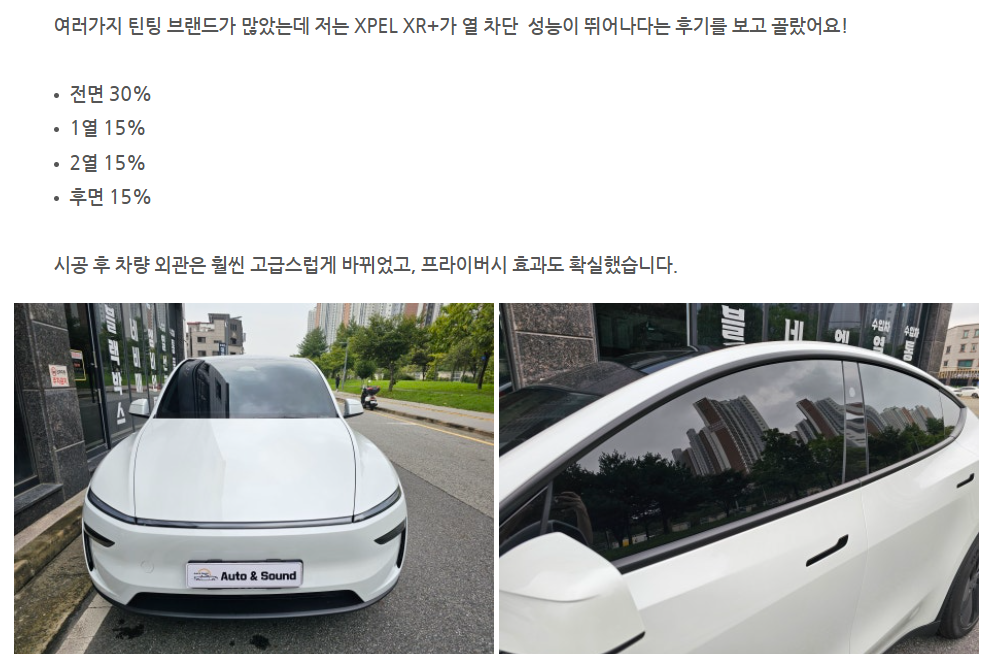 대전 카페인 w 테슬라 주니퍼 틴팅 후기