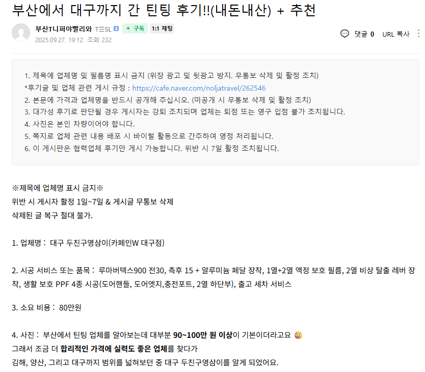 부산에서 대구까지 간 틴팅 후기 !! (내동 내산)+추천