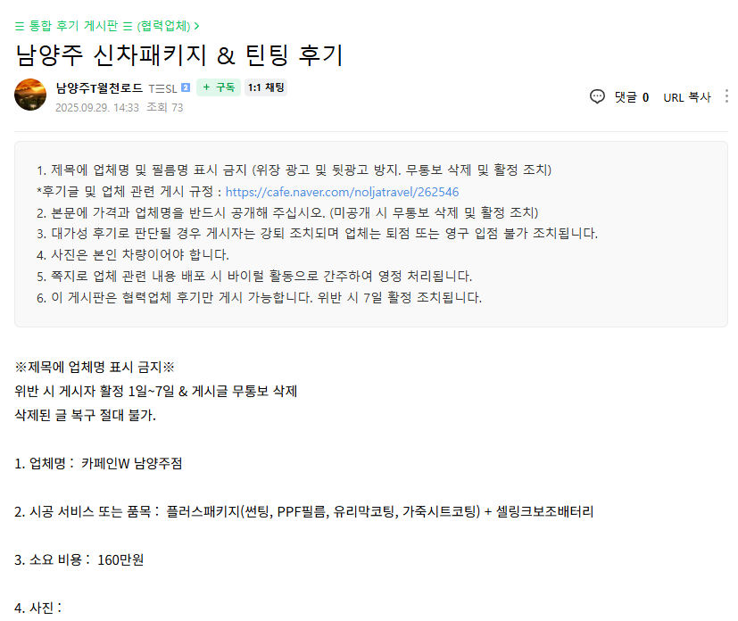 남양주 신차패키지 & 틴팅 후기
