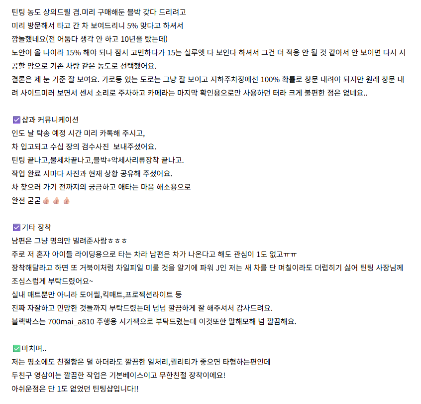 대구/ 틴팅 만족 후기