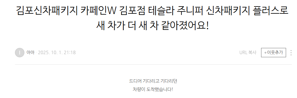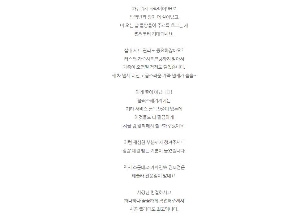 김포신차패키지 카페인W 김포점 테슬라 주니퍼 신차패키지 플러스로 새 차가 더 새 차 같아졌어요!