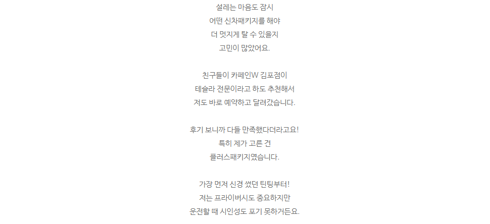 테슬라 모델3 하이랜드 김포신차패키지 카페인W 김포점이 답이네요!