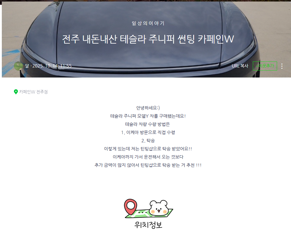 전주 내돈내산 테슬라 주니퍼 썬팅 카페인w