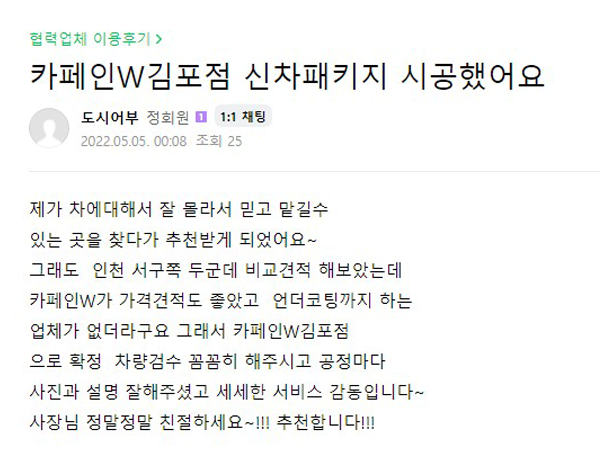 카페인W 부산강서점 신차패키지 후기 입니다.