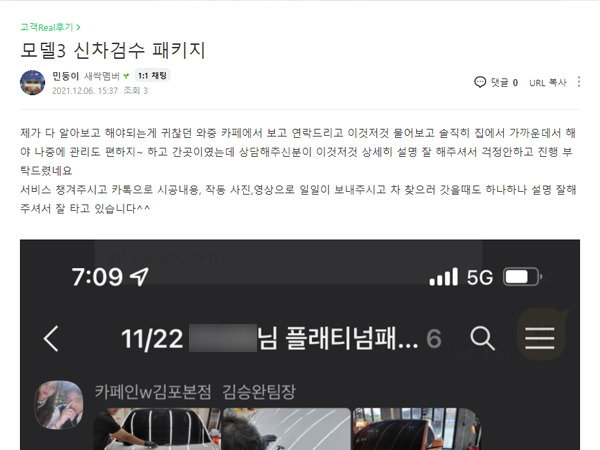카페인w 신차패키지 이용 후기