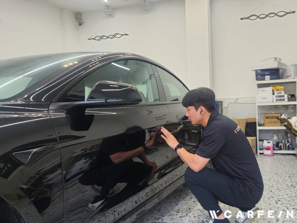 테슬라 썬팅은 측면도 난이도가 높지만 후면은