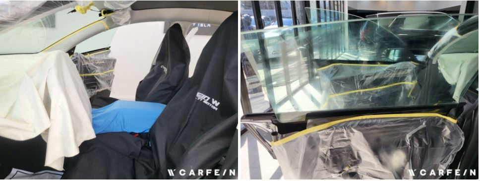 썬팅 시 무조건 실내외 풀 마스킹을 진행합니다.