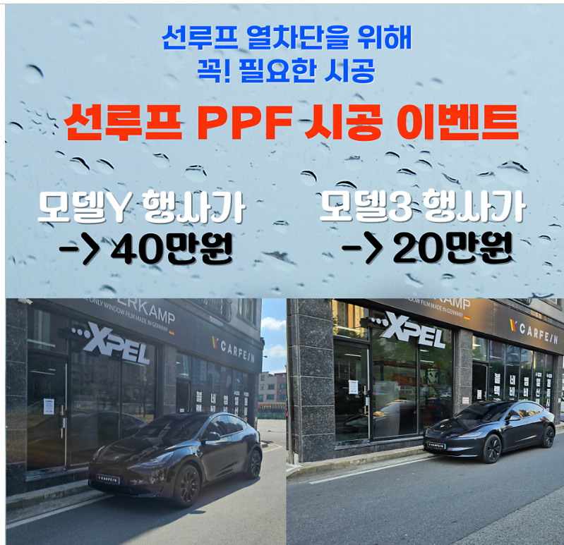 요즘 대세 테슬라 모델Y 썬루프 PPF (카페인W 대전점에서 이벤트 진행중)