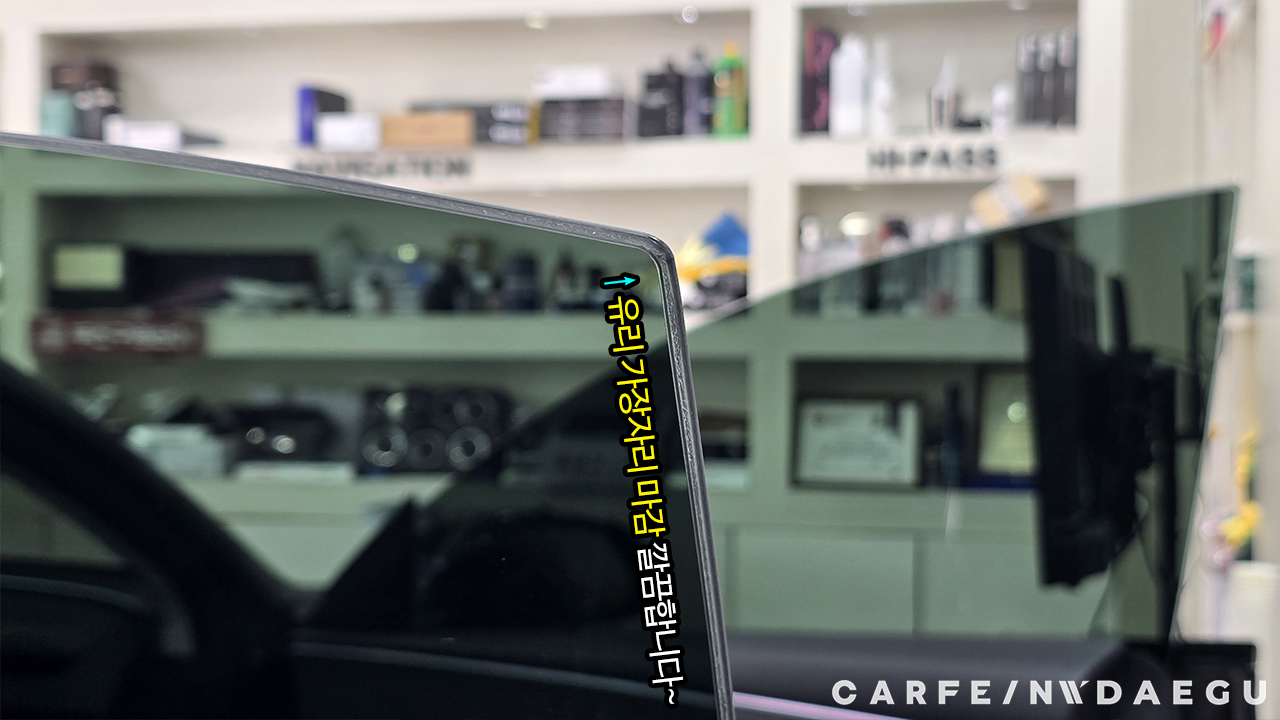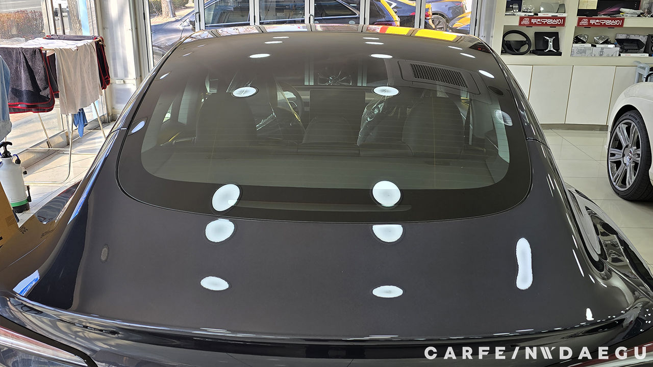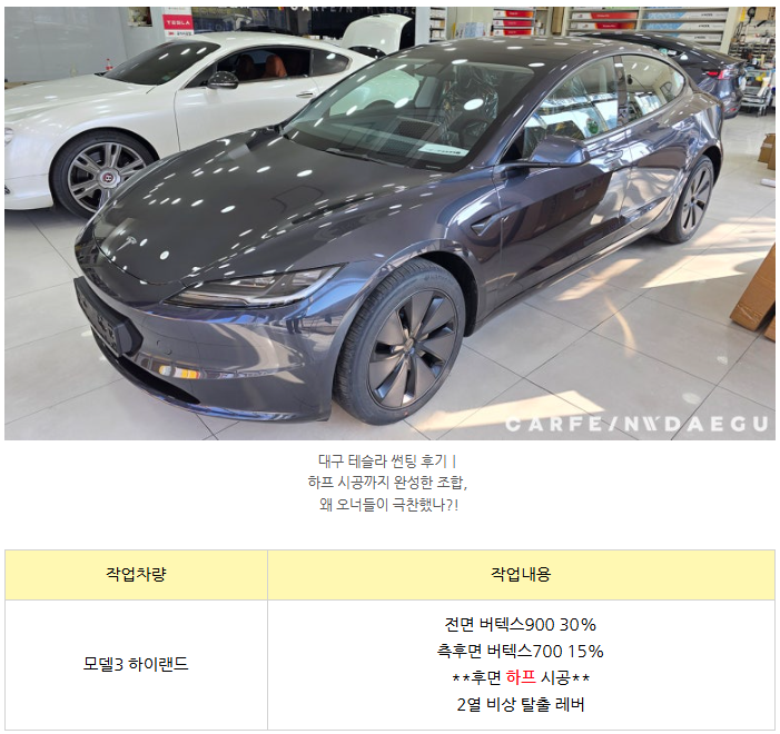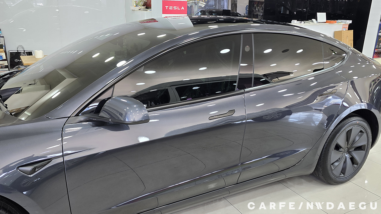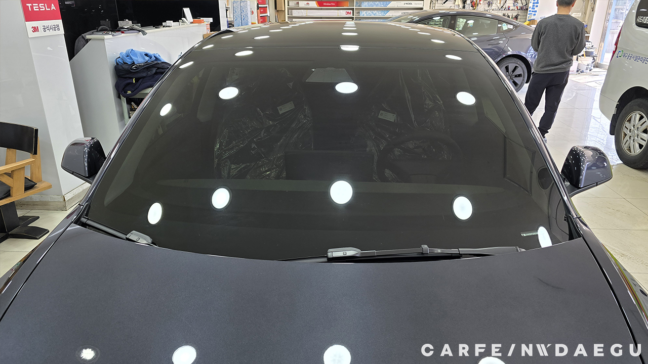 테슬라는 유리의 곡이 많아 작업이 까다롭습니다. 하지만 썬팅 명장 시공점이라면 걱정 없습니다.