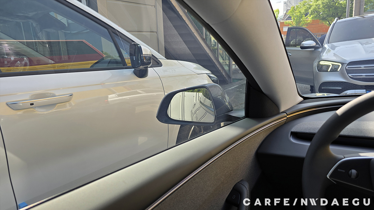 썬팅 후 시인성이 좋습니다. 운전석에서 사이드 미러와 조수석 사이드 미러를 볼 때도 시야 방해가 없습니다.