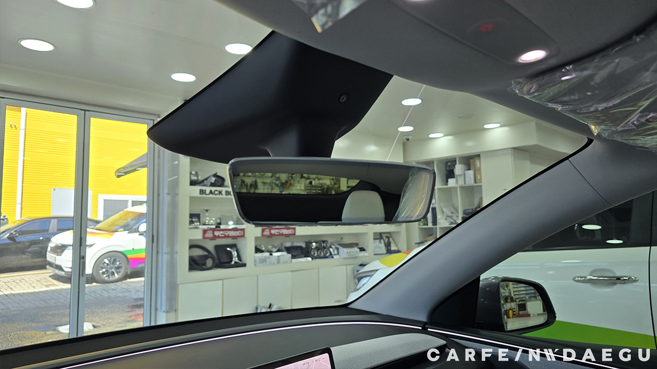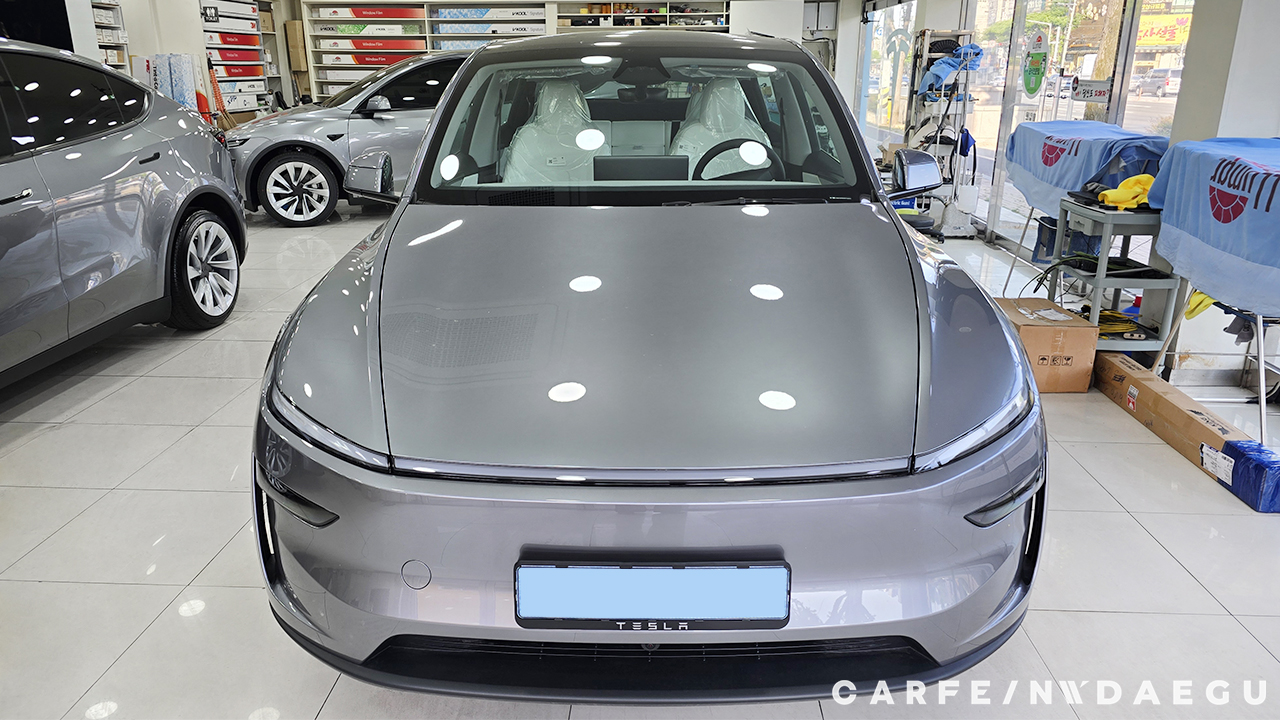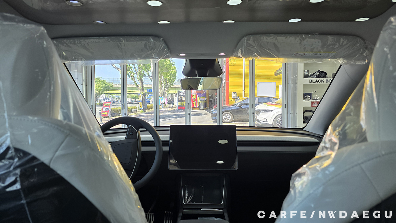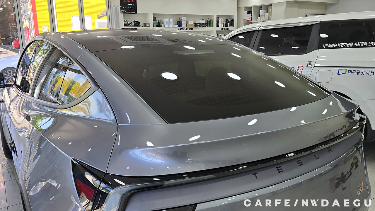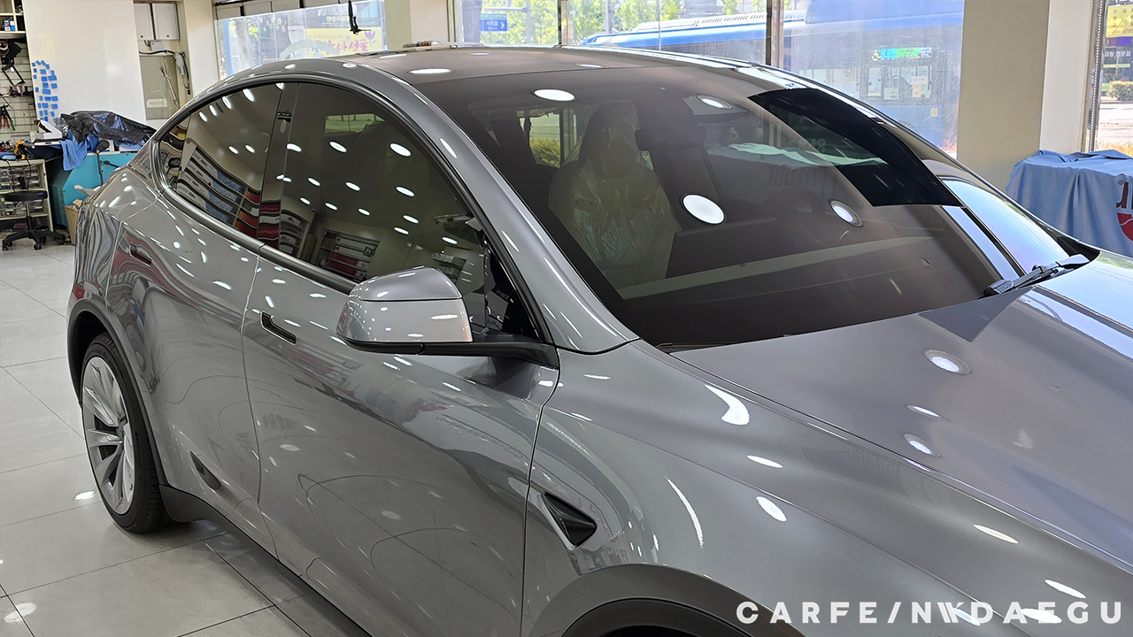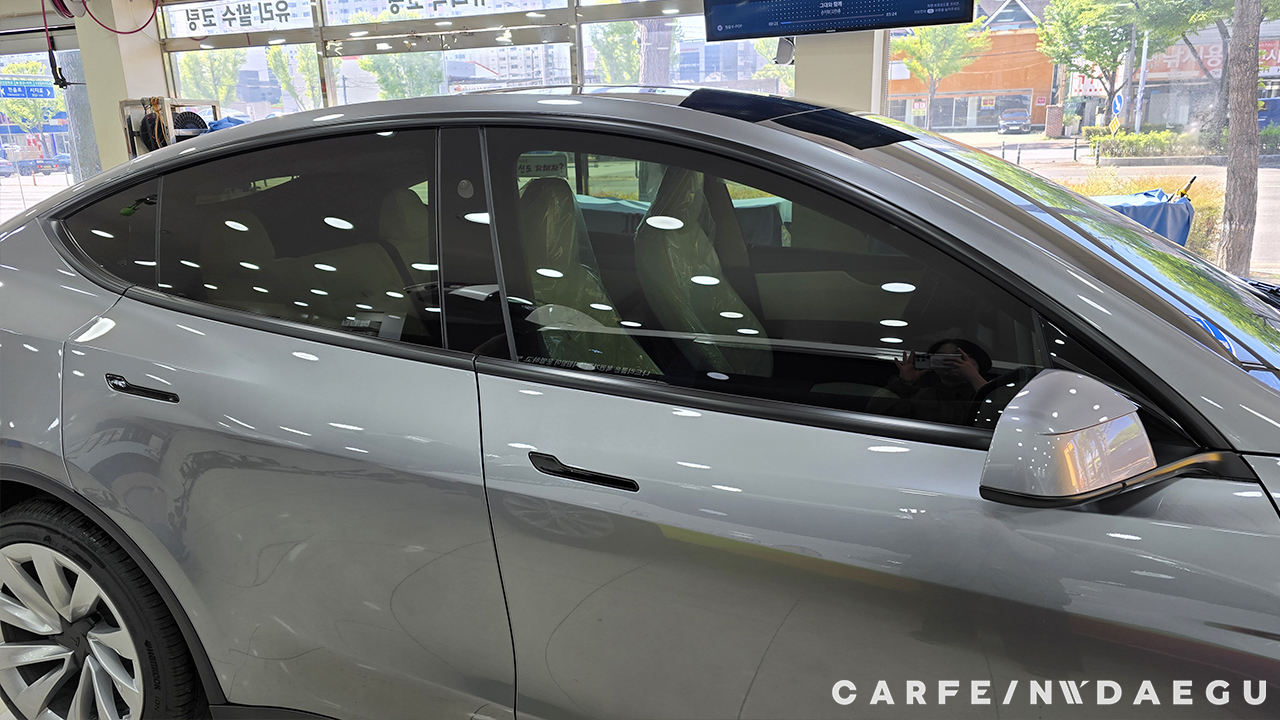 대구 테슬라 주니퍼 썬팅 전, 유리 상태는 외부 시선 차단이 되지 않습니다.