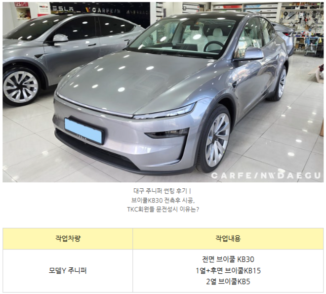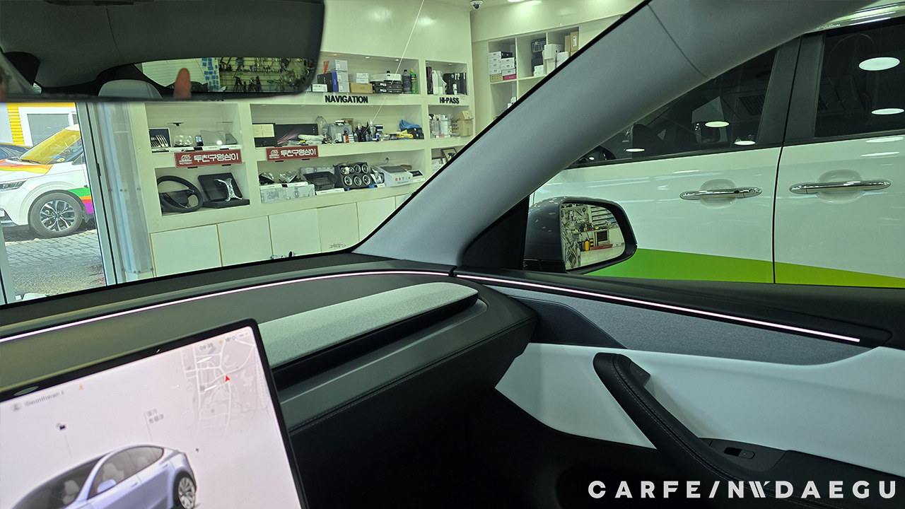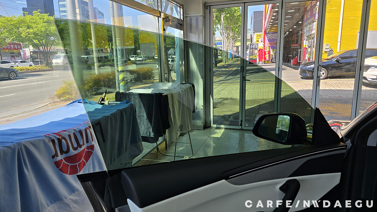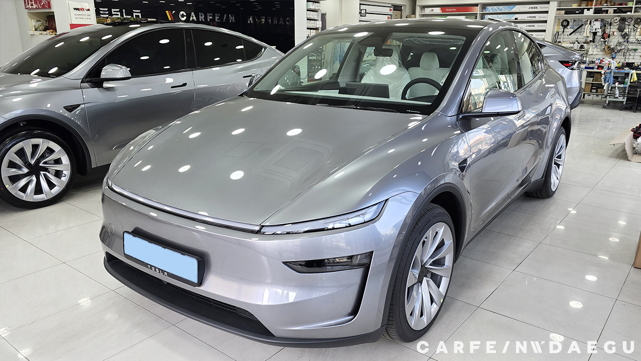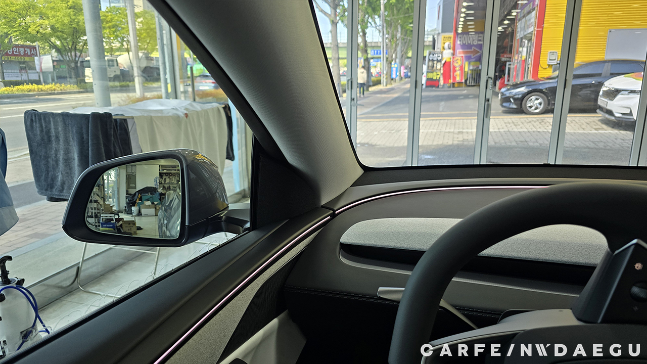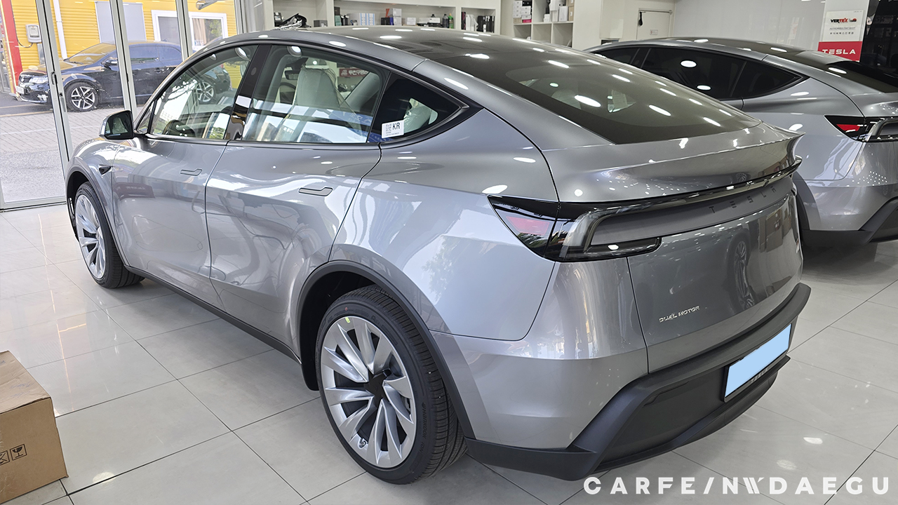 대구 테슬라 주니퍼 썬팅 전, 유리 상태는 외부 시선 차단이 되지 않습니다.