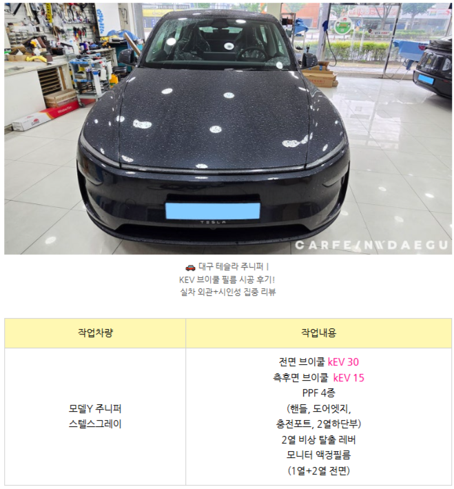 주니퍼 바디라인과 자연스럽게 이어지는 kEV 필름의 반사감