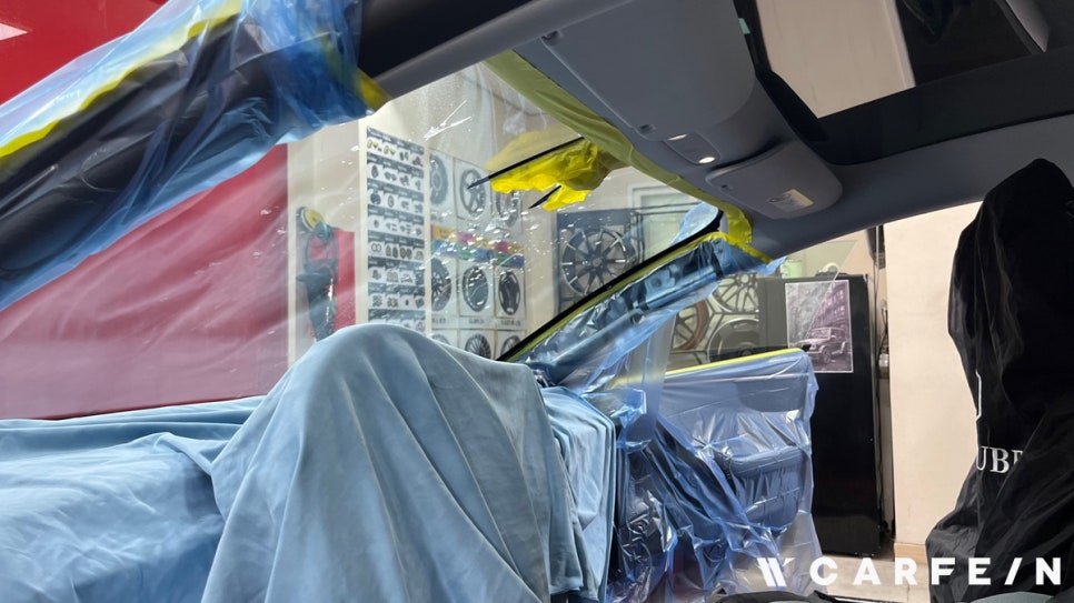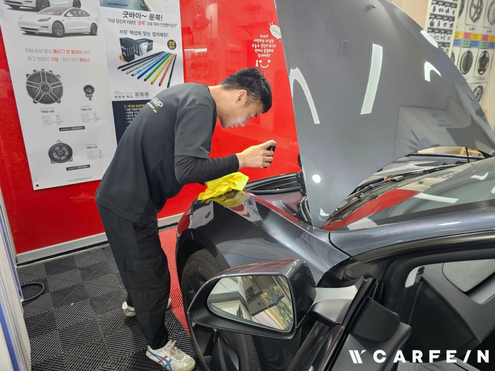 카페인 w 대전점은 검수는 기본이며 차량 보호를 위한 마스킹부터 시공까지 지켜보는 고객님들께서도