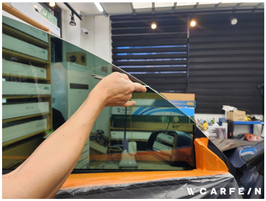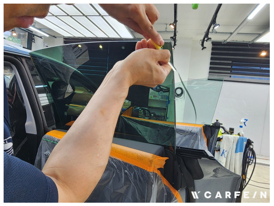 일반 차량과 달리 테슬라는 글라스 테두리 마감이 가장 시공하기 힘듭니다.