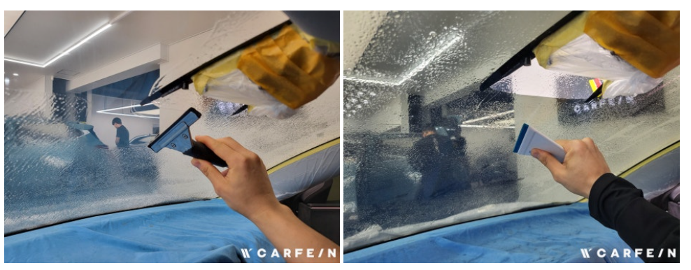 썬팅 필름과 유리 사이에 기포, 얼룩, 불균일한 밀착을 유발합니다.