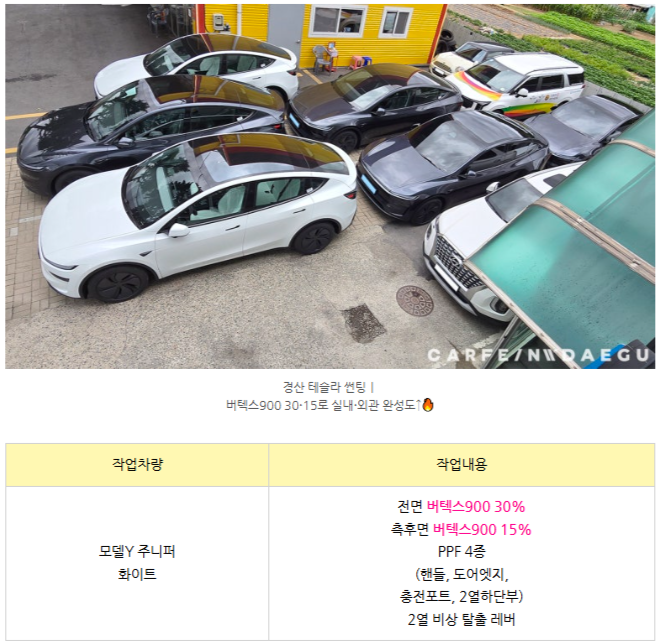 매일 주니퍼 썬팅 작업이 많습니다. 하루 최대 4대까지 작업하고 있습니다.