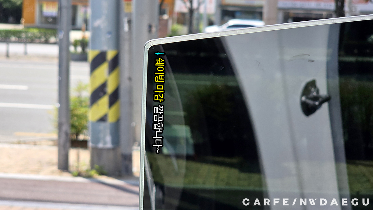 썬팅 전 기본 유리는 살짝 초록색이 감돕니다.