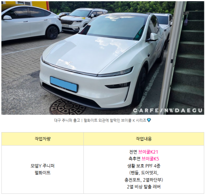 [테슬라 모델Y 펄화이트] 브이쿨K 썬팅