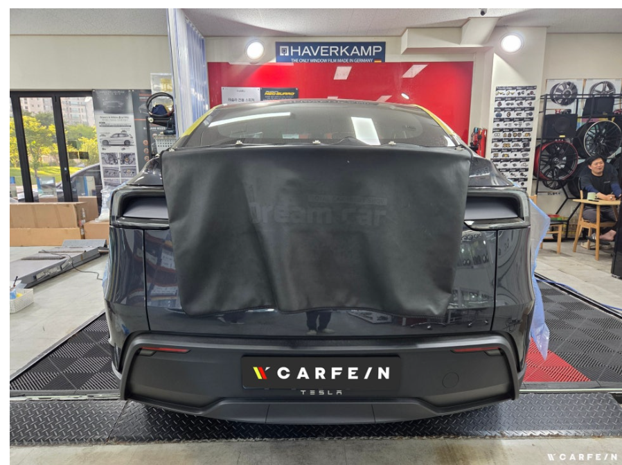 테슬라 주니퍼 차량 측면 시공을 살펴보겠습니다.