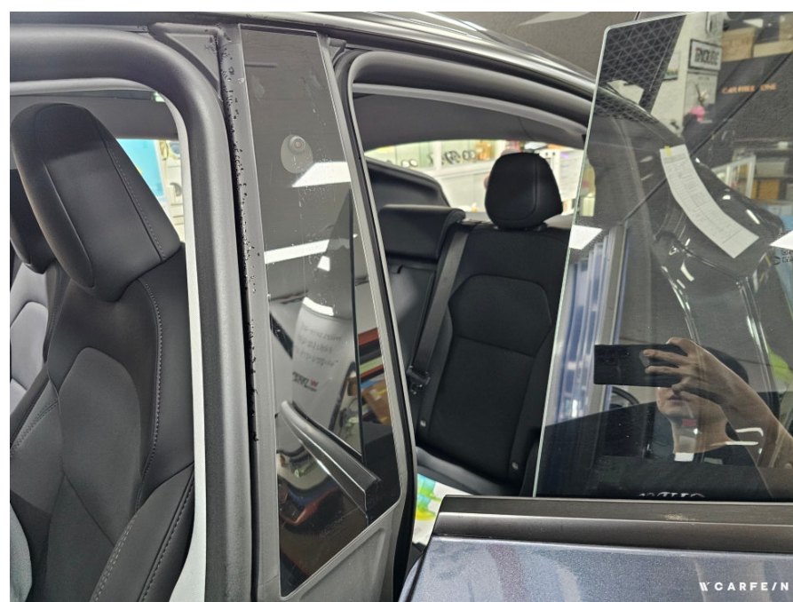 테슬라 주니퍼의 광활한 유리에 유리 발수 코팅까지!