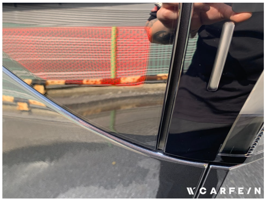 테슬라 주니퍼 차량 썬팅 작업에 쉐이빙은