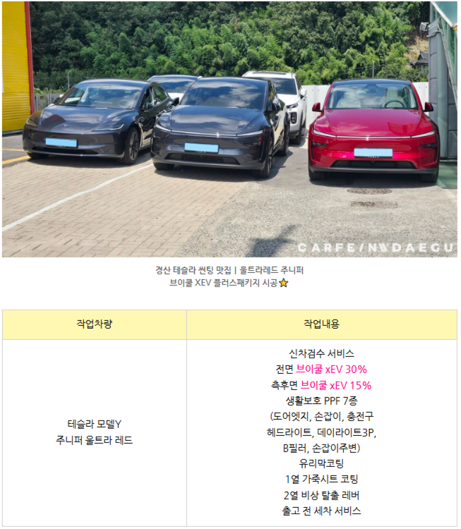 [테슬라 모델Y 울트라레드] 플러스 패키지 시공