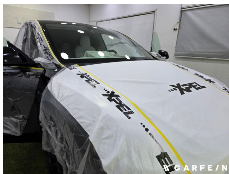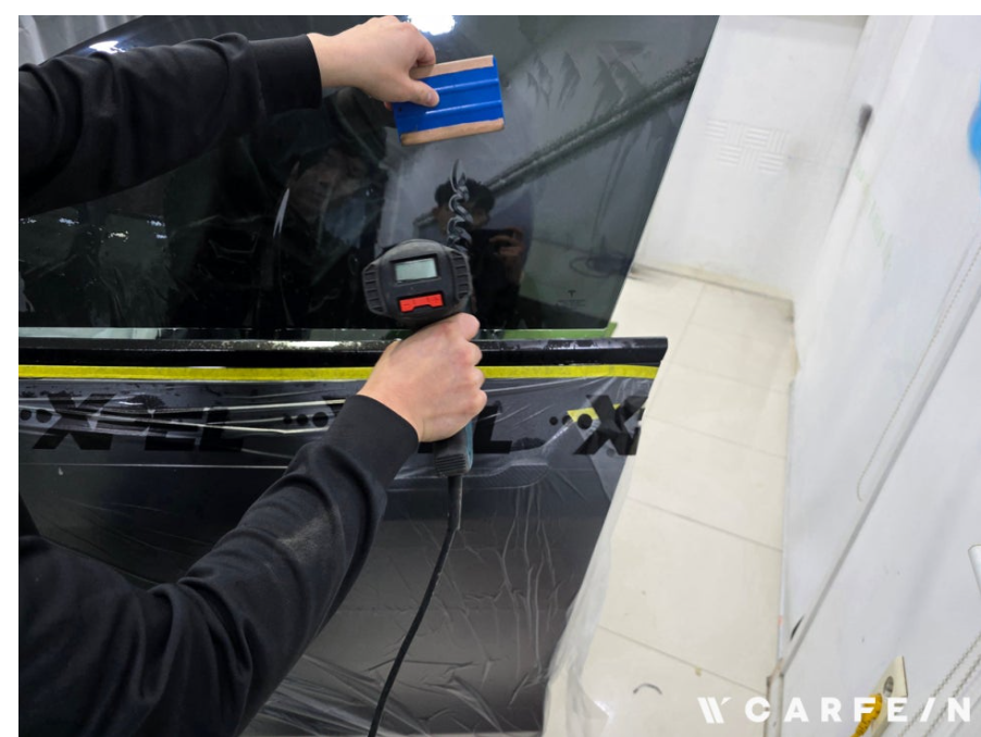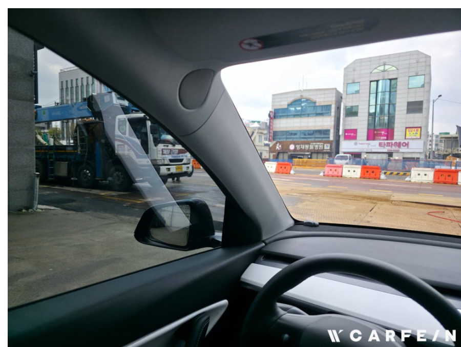 이후 히팅건을 사용해 차 유리 곡선에 맞게