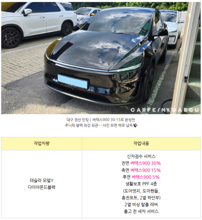 [테슬라 모델Y 스텔스 그레이] 버텍스900 썬팅 후기