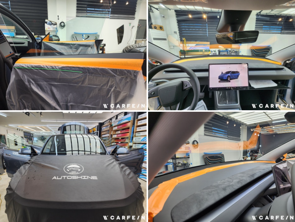 하지만 카페인W 전주점에서는 무수히 많은 테슬라 차량을 썬팅해왔기 때문에 능숙하게 썬팅을 합니다.