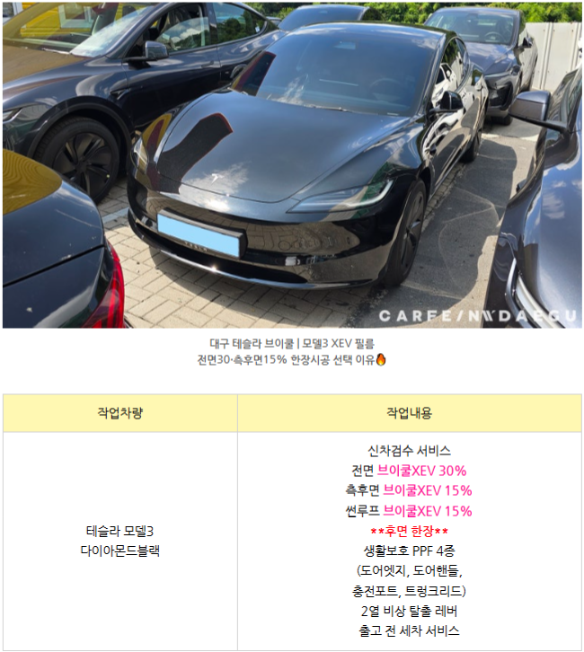 [테슬라 모델3] 브이쿨 XEV 썬팅