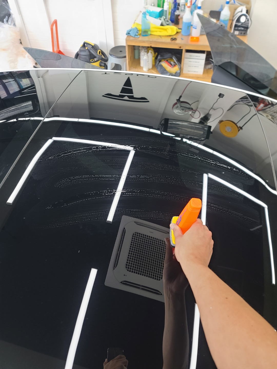 이어서 유리발수코팅까지 함께 도와드렸습니다.