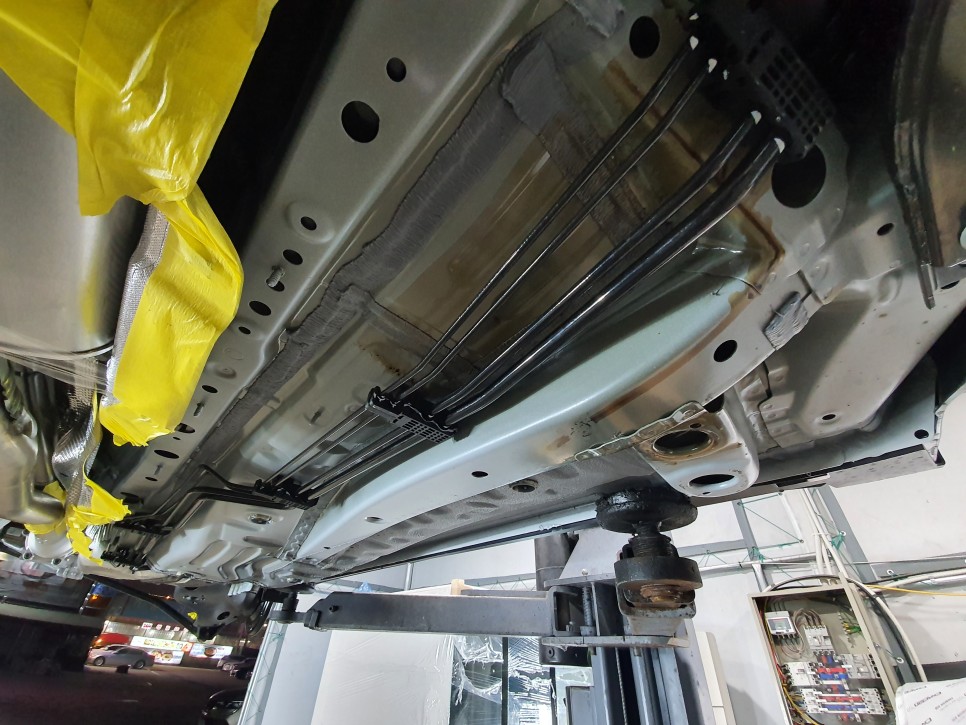 언더코팅을 진행하기 위해 차량을 리프트로