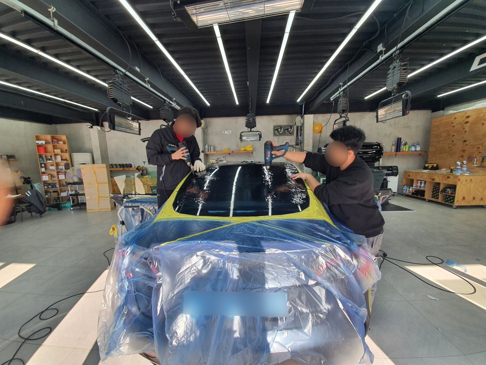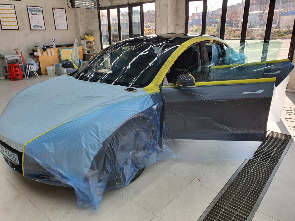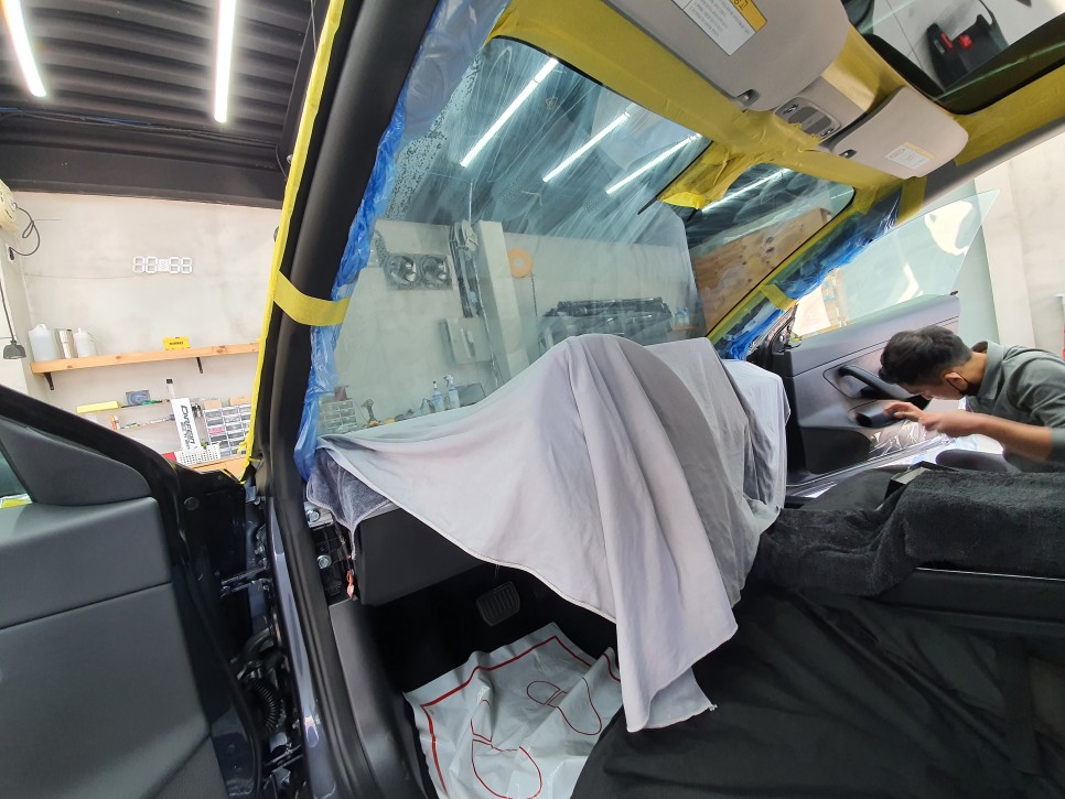 먼저 썬팅 시공을 위해 마스킹을 진행합니다.