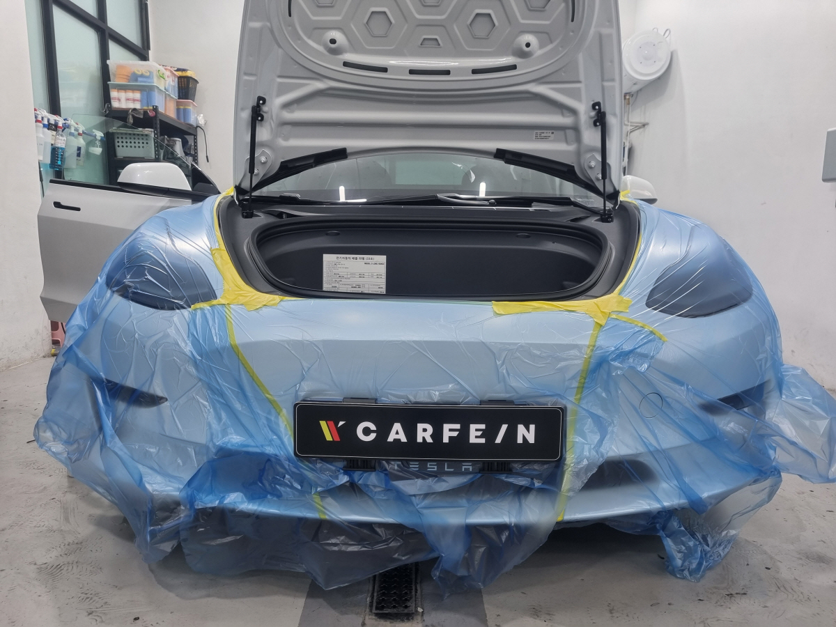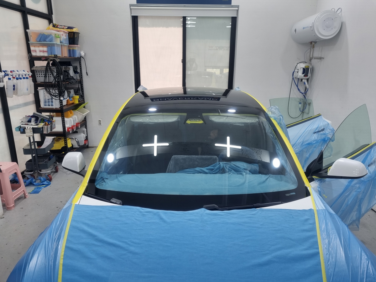 마스킹테이프와 타올 등으로 차량을 보호합니다.