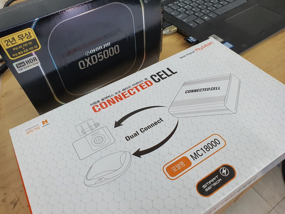 아이나비 QXD5000와 보조배터리 커넥티드 셀