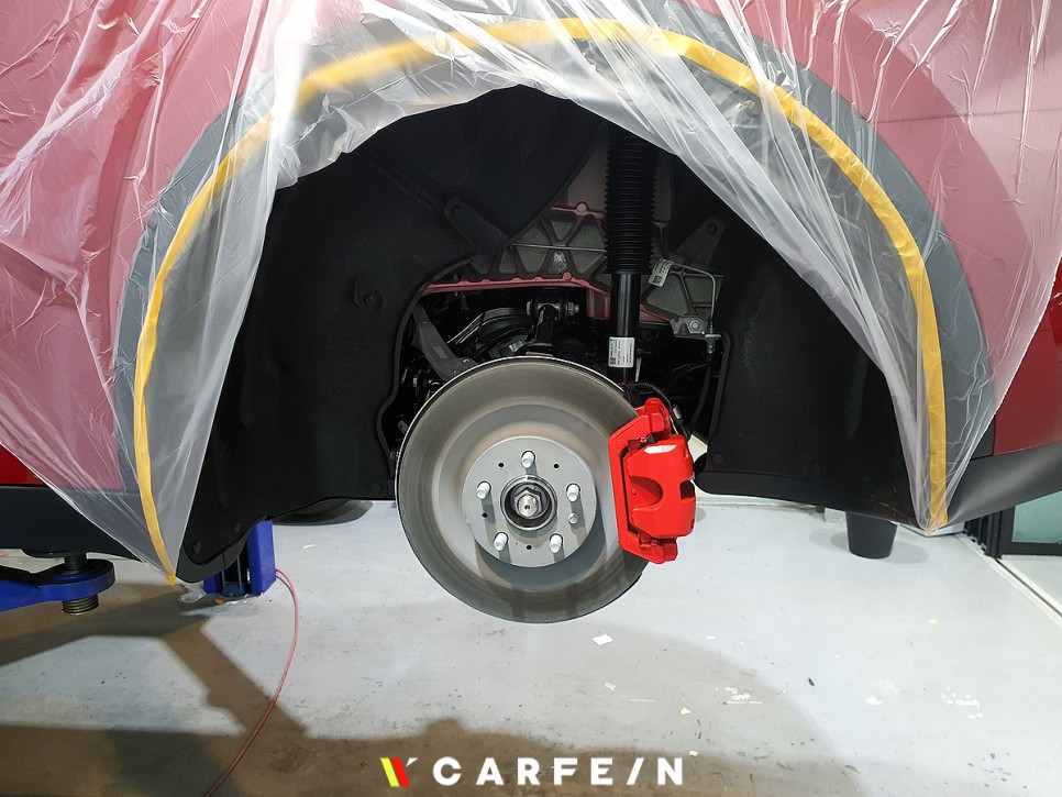 깔끔하게 캘리퍼도색 시공을 시작합니다.
