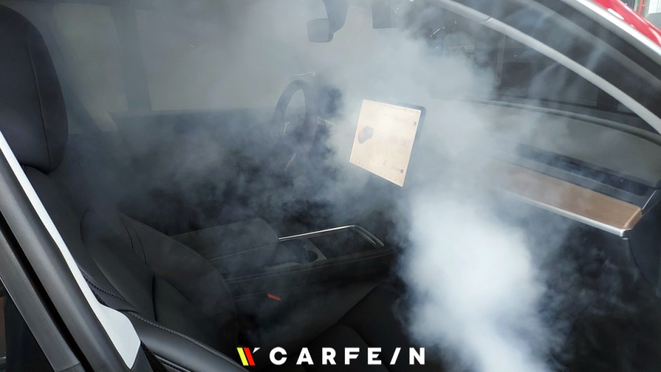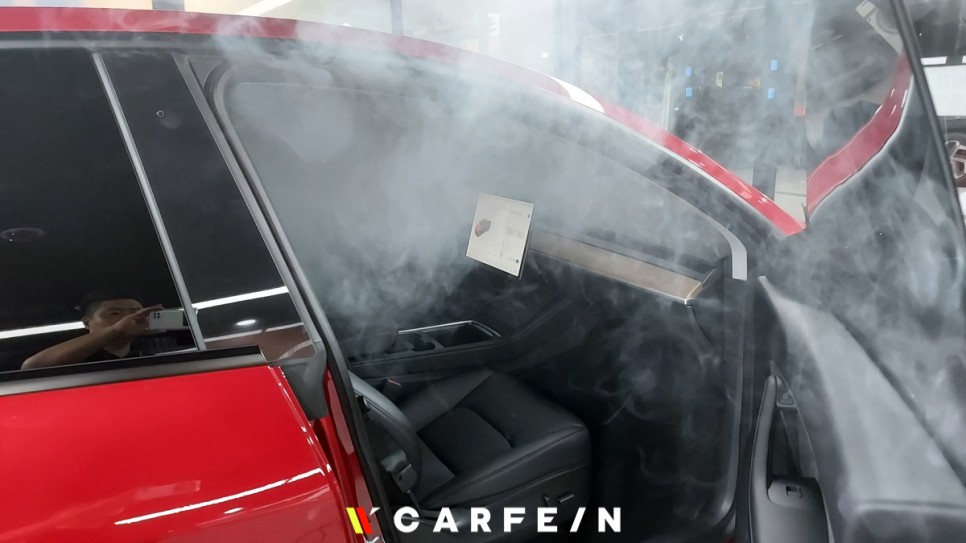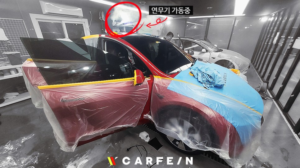 썬팅을 시작하기전 연무기를 가동시켜